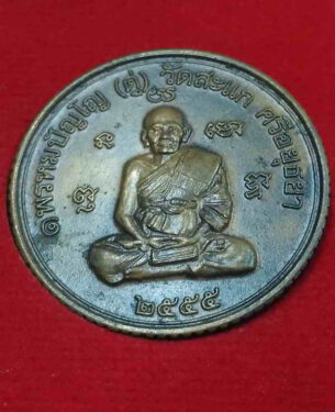 หลวงปู่ดู่ รุ่นเปิดโลกเศรษฐี เหรียญขอบสตางค์รุ่นแรก เนื้อทองแดงรมโบราณผิวซาติน หมายเลข๙๗๑