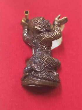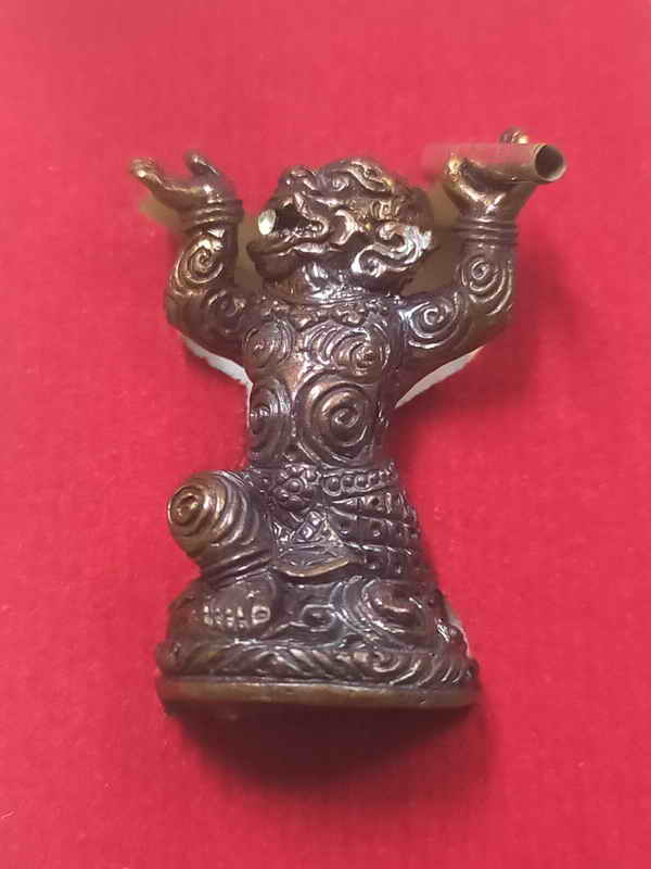 หนุมาน มหาเดช30ทัศ เนื้อทองแดงรมดำ คาบเพชร ตะกรุดเงินแป๊ะตัง หมายเลข๕๒๘