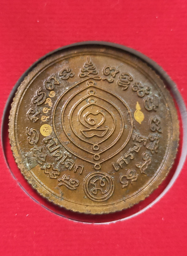 เหรียญขอบสตางค์รุ่นแรก รุ่นเปิดโลกเศรษฐี เนื้อทองแดงรมโบราณผิวซาติน หมายเลข๑๕๖๖