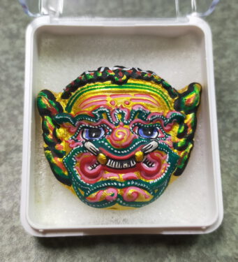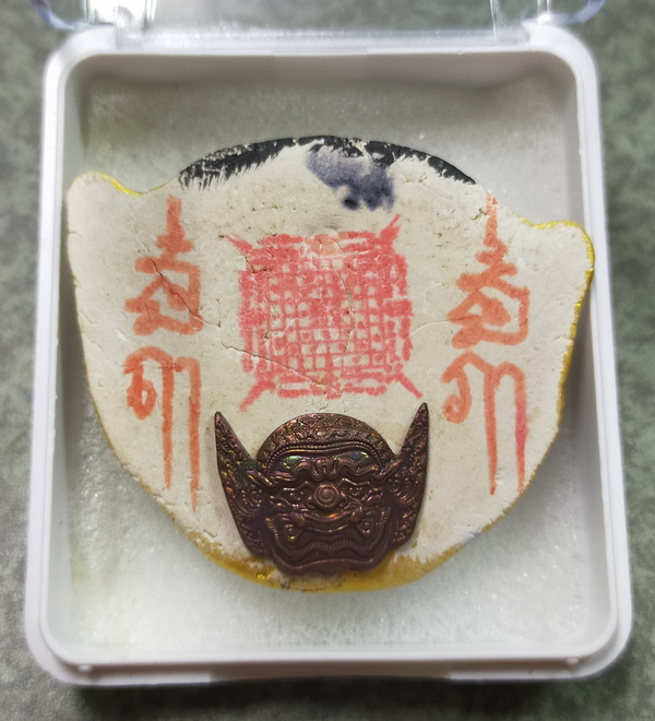 หน้าพระพิราพมหาเทพ บันดาลทรัพย์ ชนะมาร หลังยันต์ ปี2563 เนื้อผงพุทธคุทาสีสีชมพู
