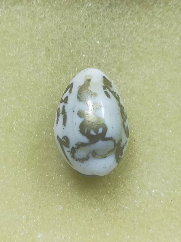 เบี้ยภควจั่น จารหมึกสีทอง อุดผง ฝังพลอย