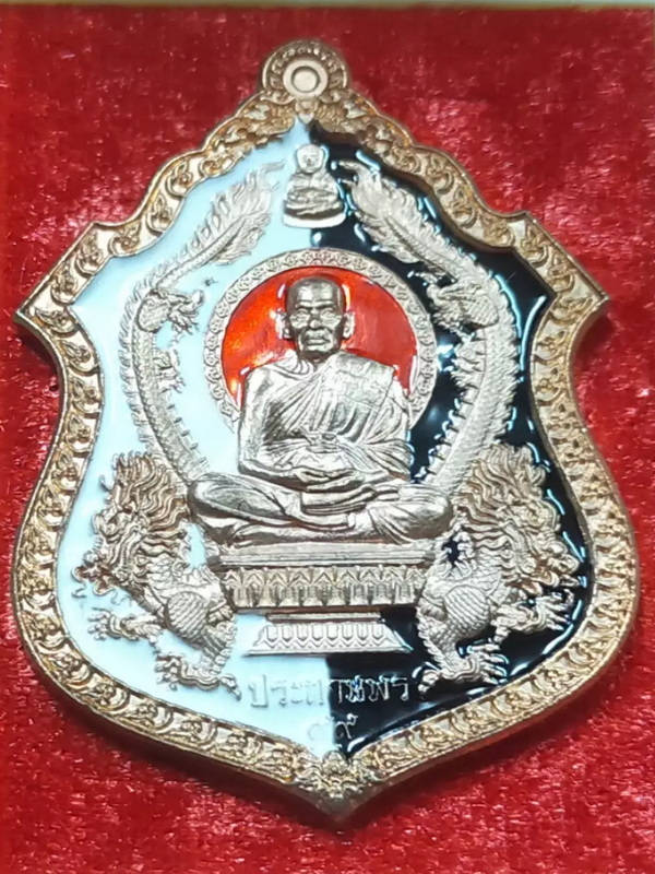 เหรียญรุ่นนั่งพานประทานพร99 ปี2563 เนื้อทองแดงลงยา แดงดำ หมายเลข๓๐๓