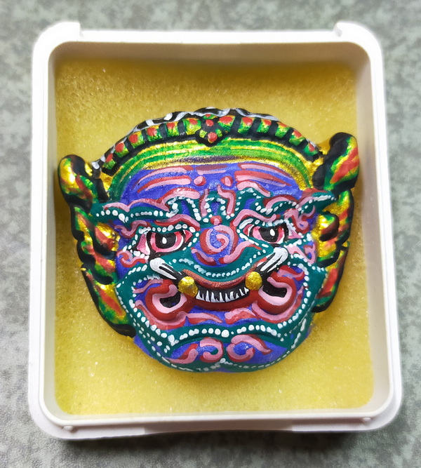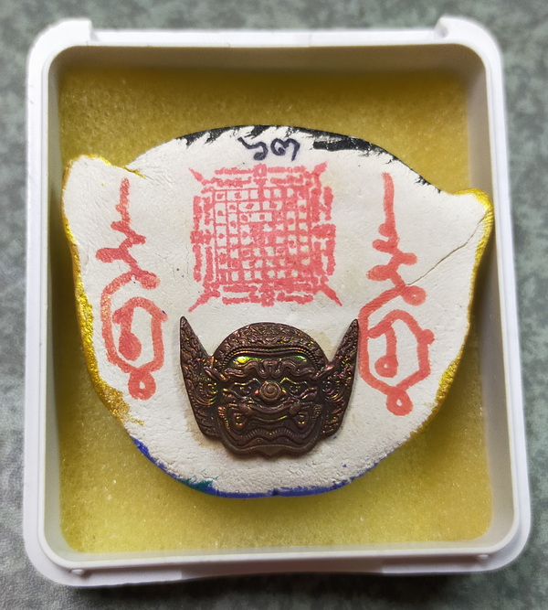 หน้าพระพิราพมหาเทพบันดาลทรัพย์ ชนะมาร หลังยันต์ ปี2563 เนื้อผงพุทธคุณ ทาสีม่วง
