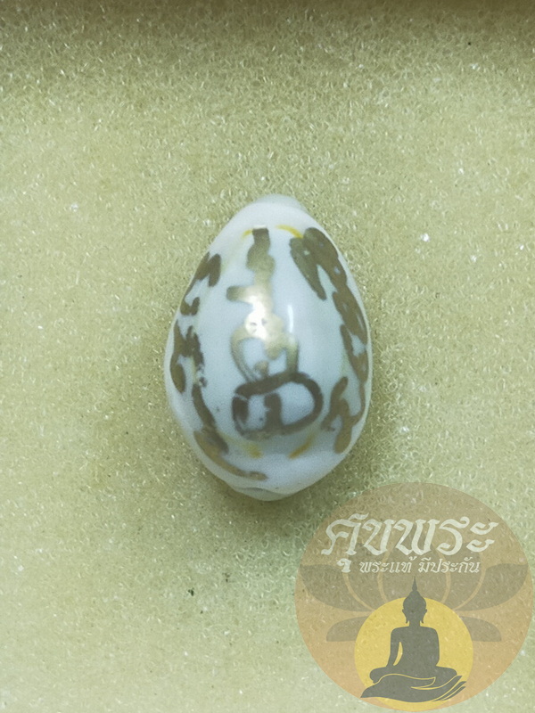 เบี้ยภควจั่น จารหมึกสีทอง อุดผง ฝังพลอย