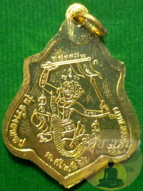 เหรียญโล่ห์ หลังหนุมาน เนื้อทองฝาบาตร ออกวัดหนองตาแก้ว ปี2562
